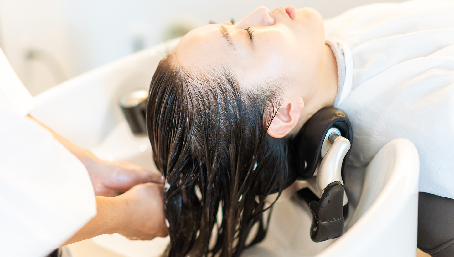 シャンプーは、体に負担の少ない「バックシャンプー」が基本です。